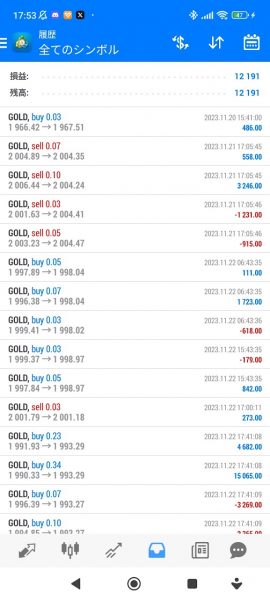 ゴールドタートル 30万円運用(0.03lot) +12,191円